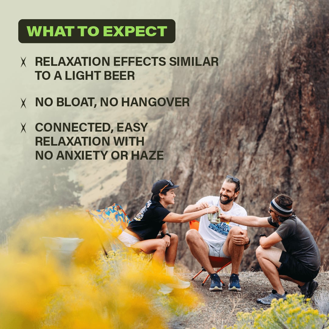 Every experience is unique to each individual, but usually you’ll feel the effects for a couple hours. It’s similar to drinking a beer - our founders notice the effects in 10-15 minutes - reaching a relaxation peak in about 45 minutes, ensuring a smooth period of unwinding.