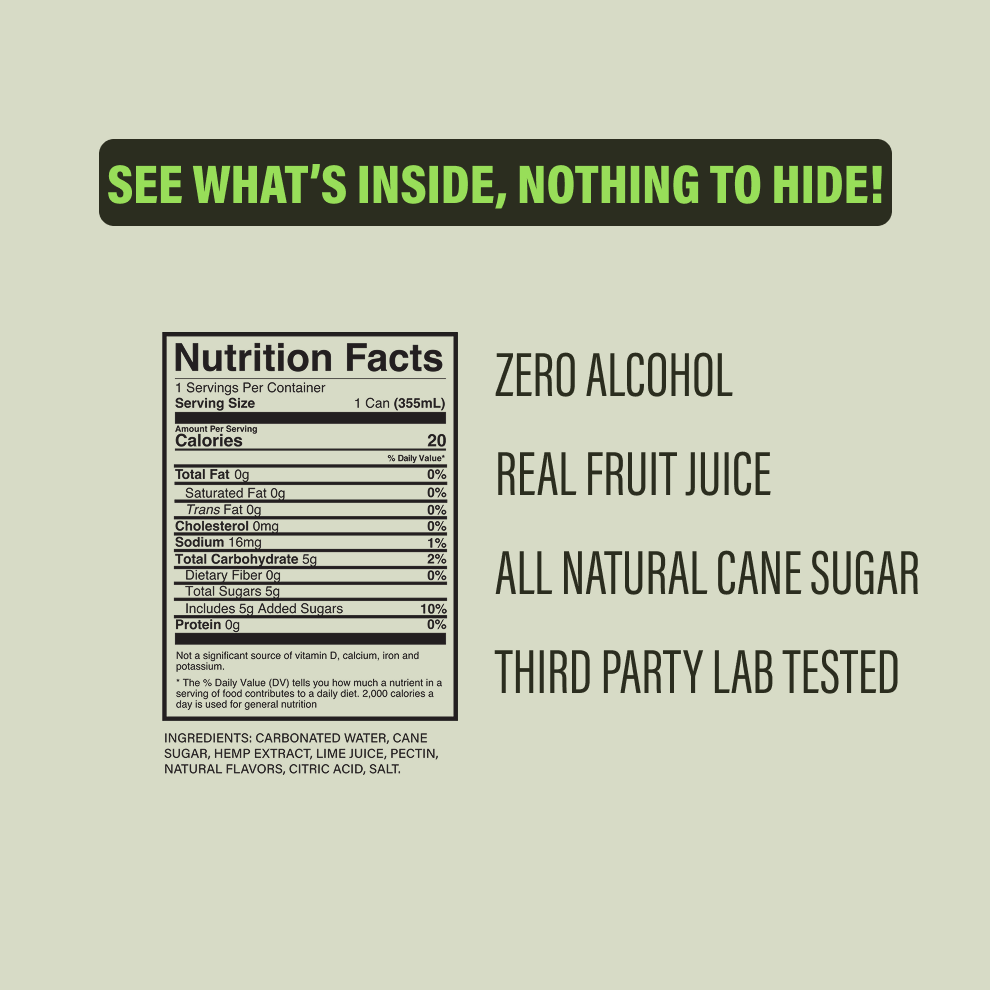 Our founders set out to create another ideal alcohol alternative—something that delivers a mellow, relaxed buzz without the high. We wanted the same social, easygoing vibe as a cocktail—but with no hangover.