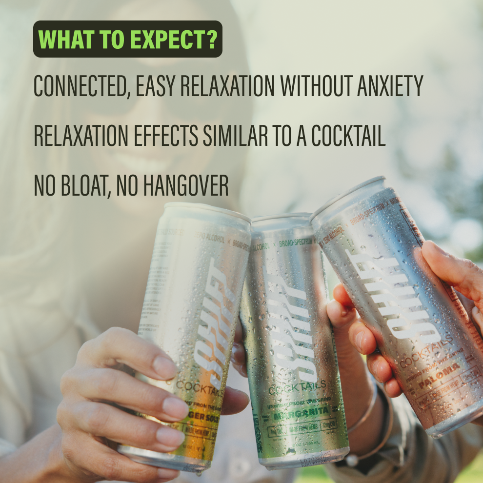 Our founders set out to create another ideal alcohol alternative—something that delivers a mellow, relaxed buzz without the high. We wanted the same social, easygoing vibe as a cocktail—but with no hangover.